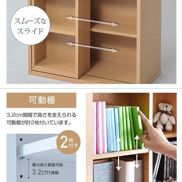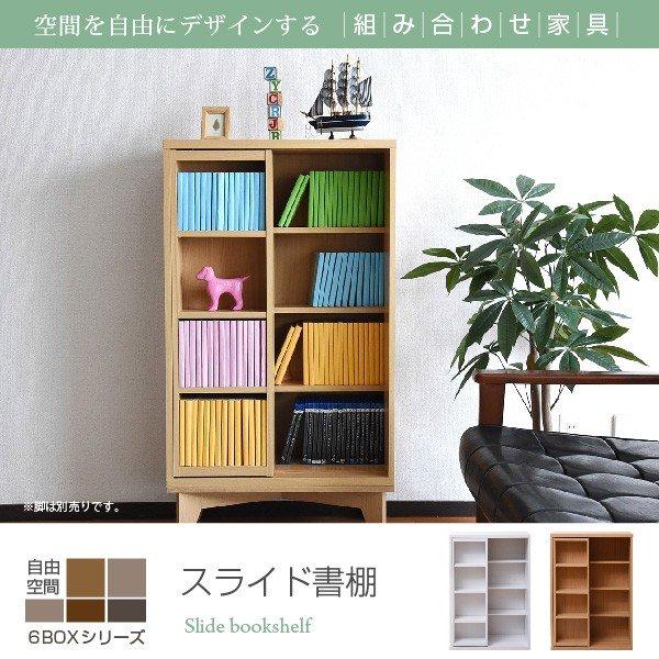 6種類のボックスを自在に組み合わせてオリジナルの壁面収納をつくれる6BOXシリーズ。リビングに最適。スライドタイプなので、文庫本や漫画の収納に最適。スライドボックスの奥も収納で活躍。