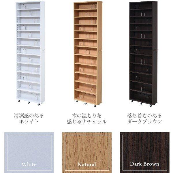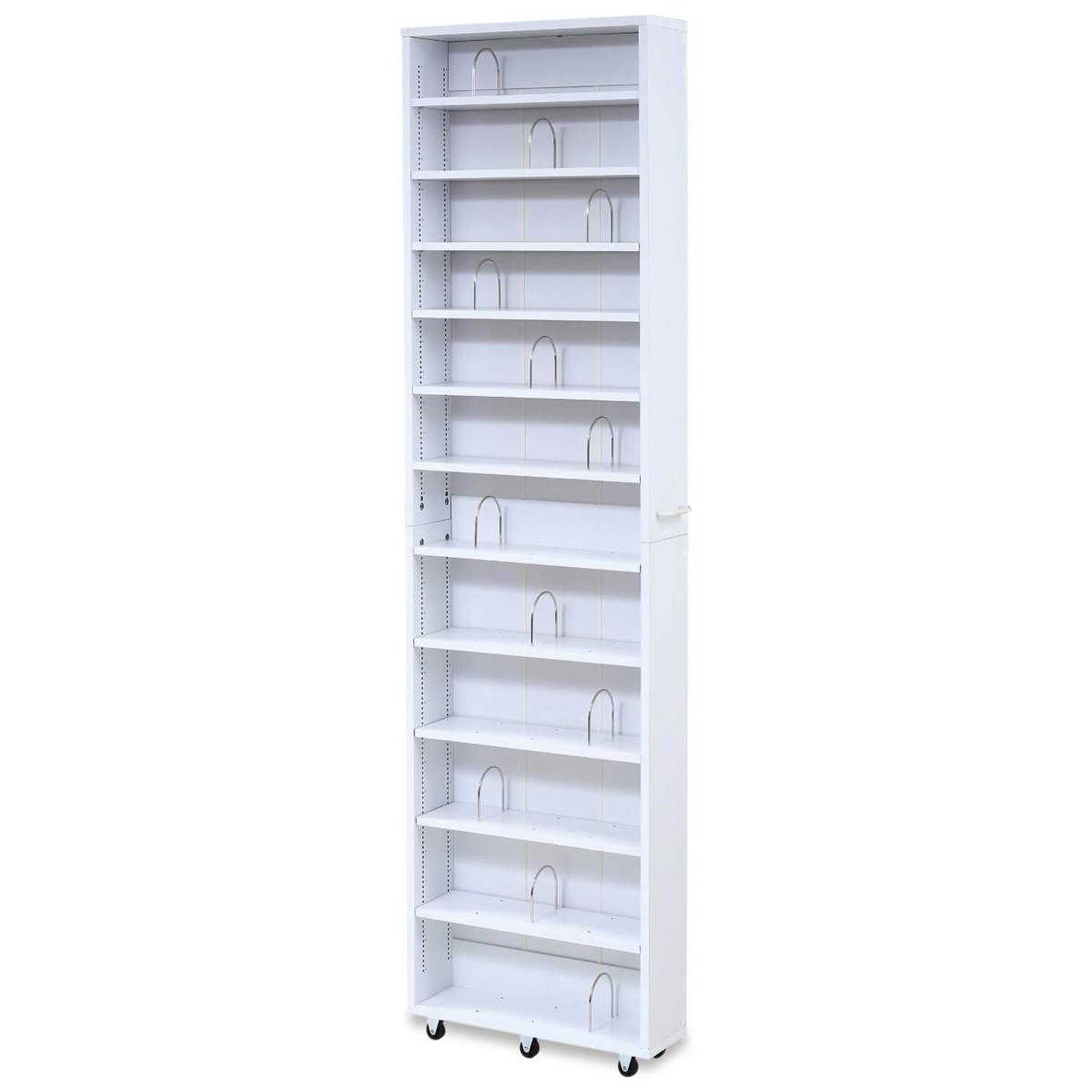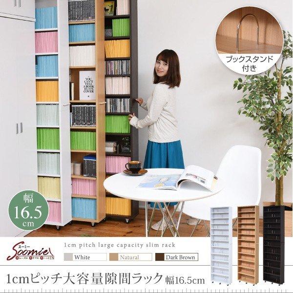 幅16.5cmの隙間を埋めてスッキリ収納。たくさん増えて置き場に悩む、本やメディア類もこれ一台にまとめることができます。棚板は11枚付いているので、12段の棚を作ることができ、収納の自由度が高い隙間ラック。